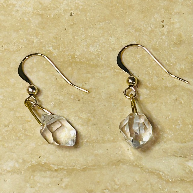 HERKIMER DIAMOND QUARTS material :14kgf HERKIMER DIAMOND QUARTZ アメリカNY州のハーキマー地区から産出する⽔晶 不純物が少なく透明度が高いという特徴 天然石にはクラックやインクルージョン(内包物)の入った石もございます。 また、天然石は一つ一つ形や色合いが違います。 お届けする天然石と画像の天然石とでは、形や色合いが多少異なりますことを予めご了承ください。 14kgf (14金ゴールドフィルド) ゴールドフィルドは金張りと呼ばれ、真鍮の芯に厚く14金を張った素材です。 通常のメッキ製品とは異なり14金を高温で圧着したものです。 通常のメッキ製品に比べてはるかに金の層が厚く剥げにくいため長期間使用していただけます。 ⭐︎Blue Lotus Jewelry について 「広げるのに一番良いのは波動、波動を石に刻印すると良い」 魂のガイドからアドバイスがあり、 スピリチュアルなジュエリーを制作しました。 宇宙の意思-そこはすべての周波数を内包するところ、 そこから個別の周波数に繋がることが出来ます。 Blue Lotus Jewelry では、宇宙の意思に繋がり、そこで示された光を伴って変化するホログラムなエネルギーを石に刻印しています。 その石に必要な形が入るとそれを必要な方が手に入れます。 *エネルギー的な刻印ですので肉眼では見えません。 地球が何億年もの時をかけて創り出した石たちを使って、 スピリチュアルだけれどデイリーユース、ファッション性の高いジュエリーをお届けしたい。 そんな思いのもと、 Blue Lotus Jewelry をお送りしています。 あなたの為に生み出されたジュエリーとの 素敵な出会いがありますように。 BLUE LOTUS JEWELRYのピアスは、石にエネルギーが刻印されています。 石に刻印されたエネルギーが心や意識に働きかけ、 あなたの思考パターンや信念をやさしく整えていきます。 そのプロセスで執着を手放し、 あなた本来の願いを実現するサポートとなります。